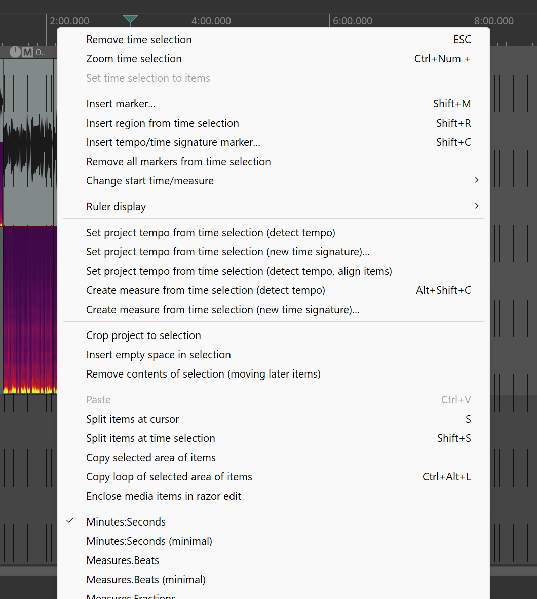 Right click on the horizontal region that includes the time signature. There is a lot of juice hidden in the unmarked regions above the waveform. For this, right click on the ruler-like entity. It is likely in “measures.beats”. Narration is done in minutes:seconds. Use the menu to select minutes:seconds.